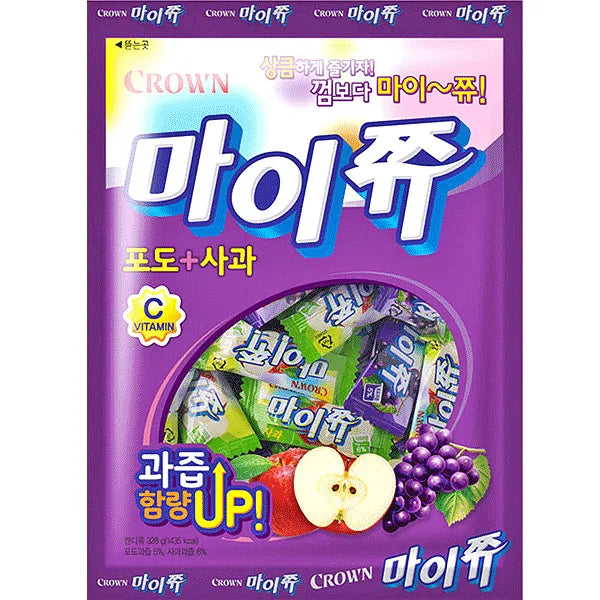 MyChew Taffy, Apple & Grape by Crown is a well-known snack from Korea. Made in Korea.