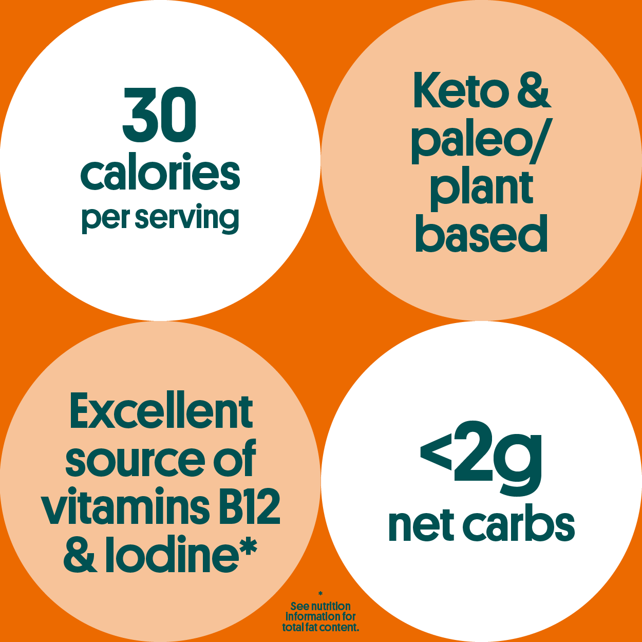 Ingredients: Organic Seaweed, Organic Sunflower Oil, Organic Vegan Cheddar Flavor Seasoning Powder (Organic Maltodextrin, Organic Tapioca Solids, Organic Nutritional Yeast, Sea Salt, Organic Natural Flavor, Organic Yeast Extract, Lactic Acid, Organic Garlic Powder, Organic Onion Powder, Organic Spices)