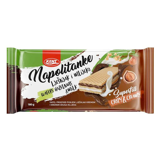BosniaKent Napolitanke Wafers Hazelnut & Milk, 180g (Bosnia)