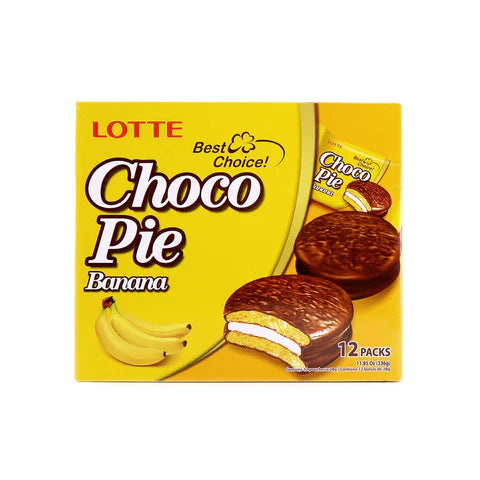 Choco Pie, Banana by Lotte is a well-known snack from Korea.