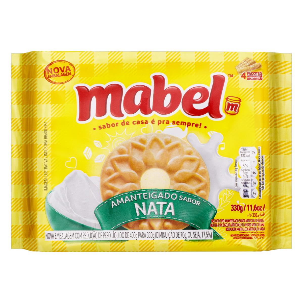 Made in Brazil. The Nata flavor of Mabel Amanteigado cookies is characterized by a creamy and slightly sweet taste reminiscent of fresh cream or clotted cream. The cookies are made using high-quality ingredients.