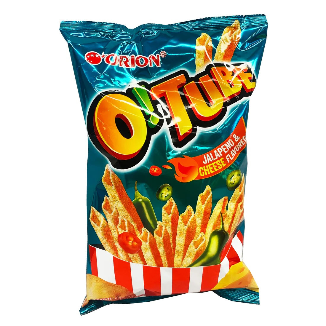 O! Tube, Jalapeno, and Cheese by Orion is a well-known snack from Korea. Made in Korea.