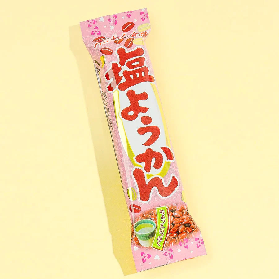 Made in Japan. It combines the smooth and dense texture of yokan with the savory-sweet taste of red beans. It offers a unique twist with its salty red bean flavor, balancing sweetness and savory.